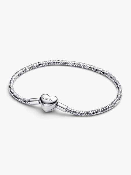 PANDORA ΜΟΜΕΝΤS Heart Clasp Faceted Snake Chain Bracelet