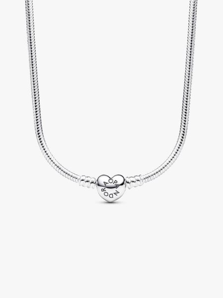 PANDORA ΜΟΜΕΝΤS Snake Chain Sterling Silver Necklace with Heart clasp