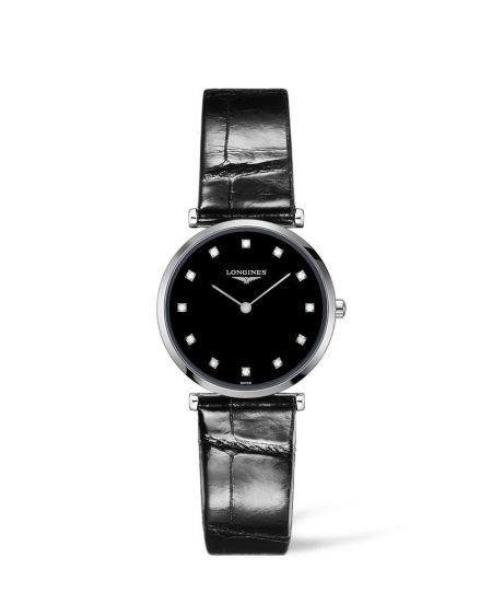 LONGINES LA GRANDE CLASSIQUE Diamonds & Black Leather Strap