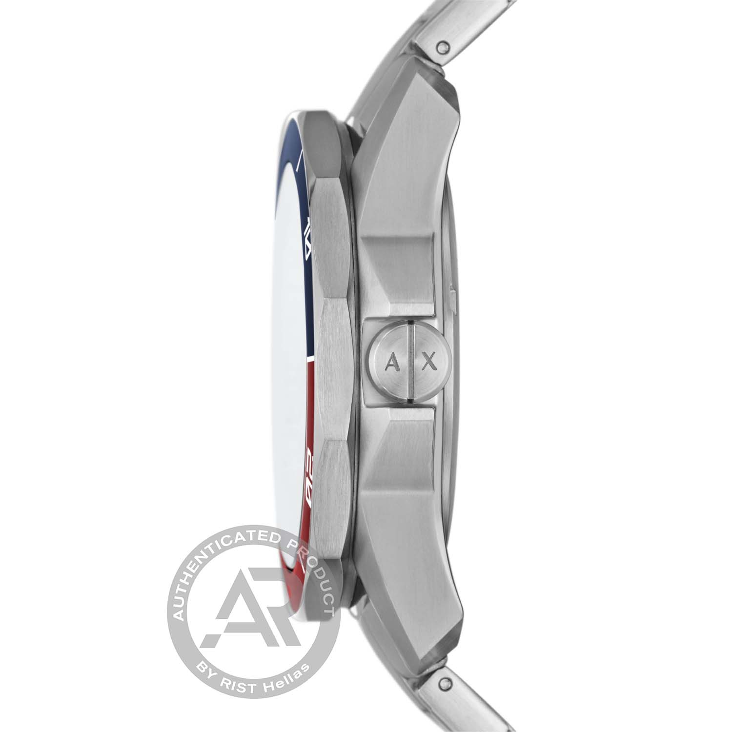 ARMANI EXCHANGE men's watch, with special bezel in black and red, black dial & stainless steel bracelet, with date display.