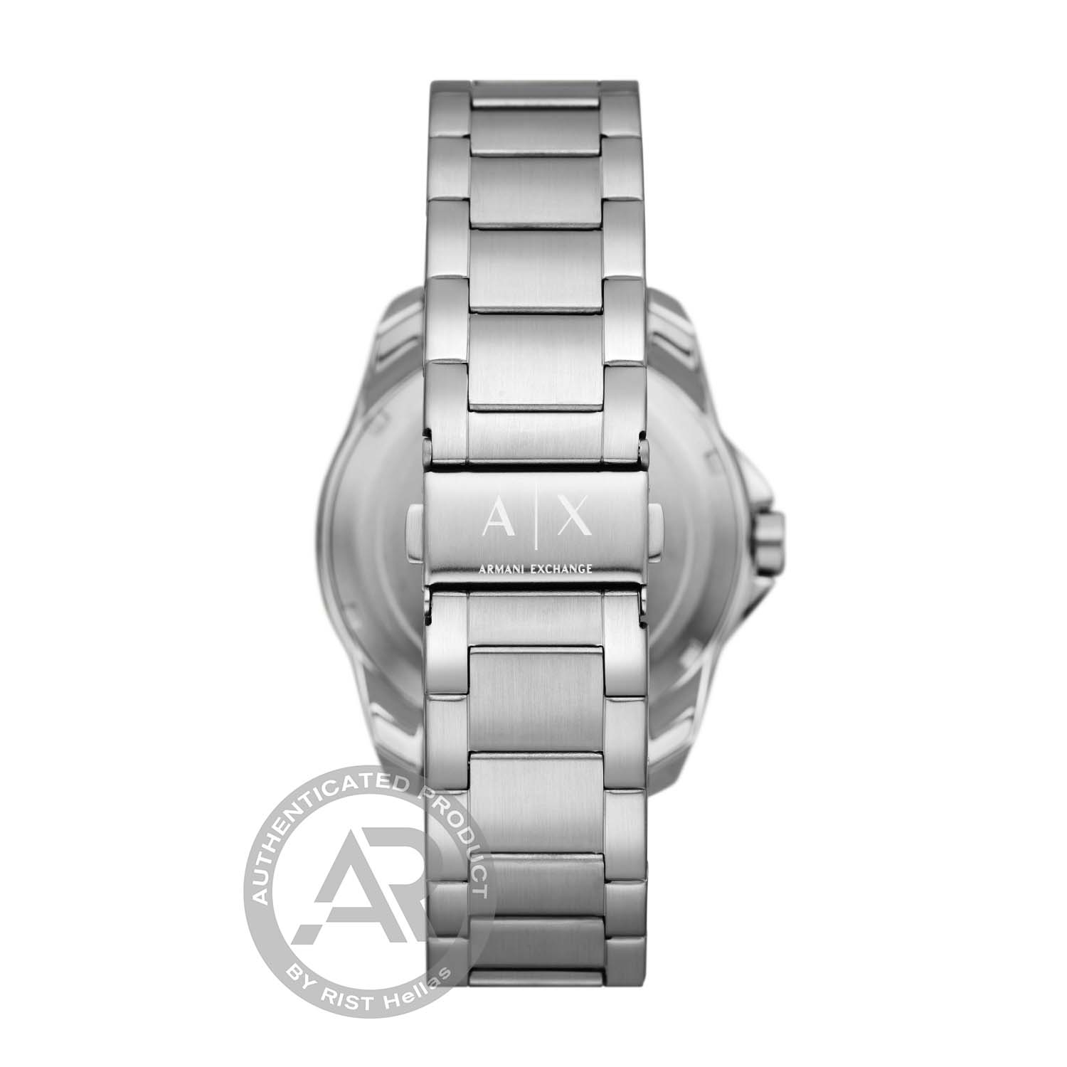 TypeWatchBrandARMANI EXCHANGECollectionSPENCERGenderMaleMovementQuartz-BatteryCrystal TypeMineral crystalCase ShapeRoundCase ColorSilverDial ColorBlackBand TypeBraceletBand ColourSilverBuckleFolding BuckleFunctionsHands, DateQuarantee2 Years of Official Dealership