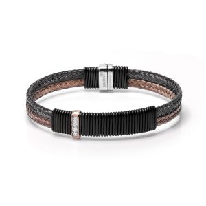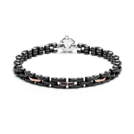 BARAKA 316L Collection men's steel bracelet with black and brown PVD finish and rose gold insert with diamonds.