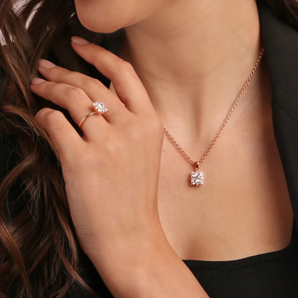 BRONZALLURE ALTISSIMA Cubic Zirconia Flower Pendant Necklace