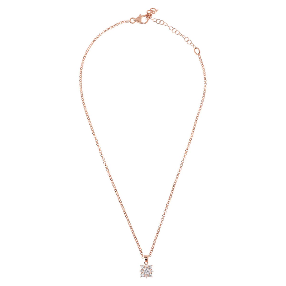 BRONZALLURE Altissima collection choker necklace in patended metal alloy with 18K rose gold plating and zircon flower pendant.