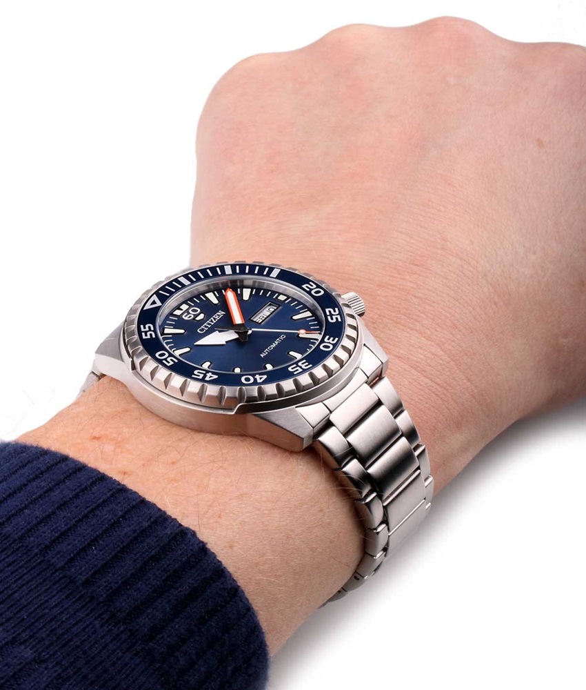 TypeWatchBrandCITIZENGenderMaleMovementAutomaticCrystal TypeMineral crystalCase ShapeRoundCase ColorSilverDial ColorBlueBand TypeBraceletBand ColourSilverBuckleFolding BuckleFunctionsDay, Date, HandsCountry of OriginJapanQuarantee3 Years by Official Dealership
