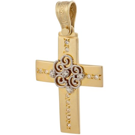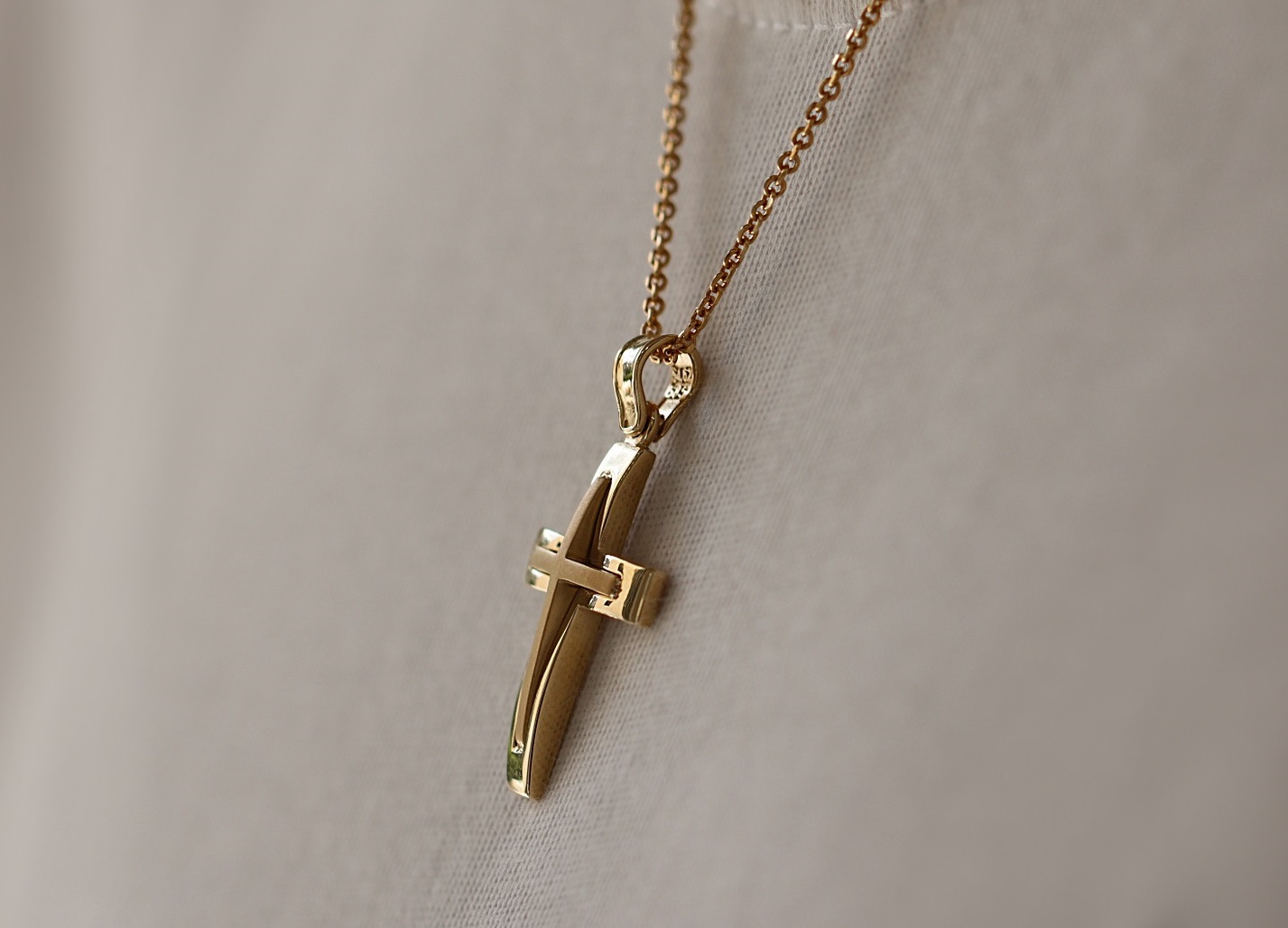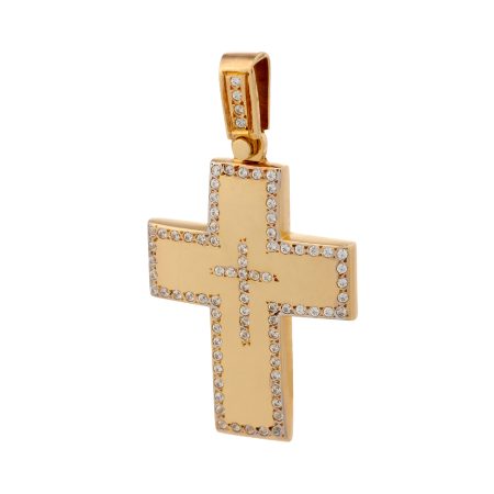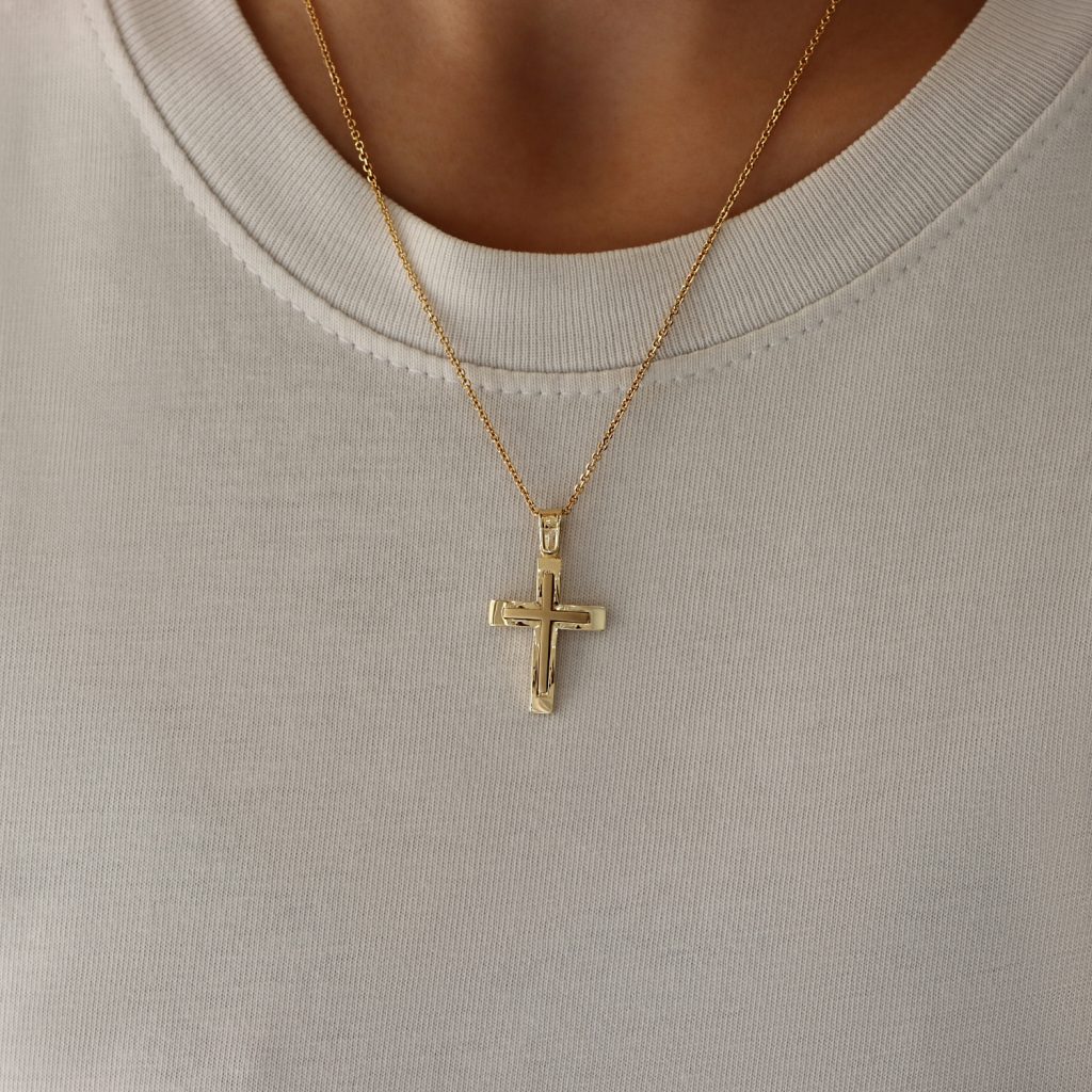 Timeless cross in 14K yellow gold with polished and matte finish.