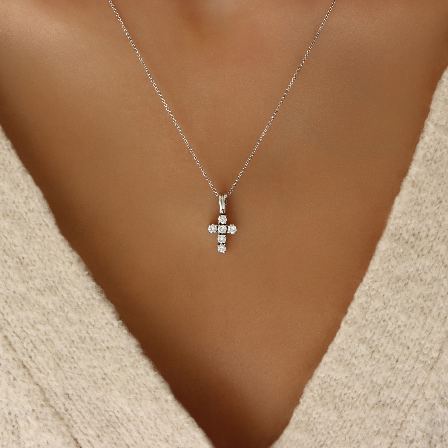 Elegant timeless cross in 18 karat white gold with white sparkling diamonds.