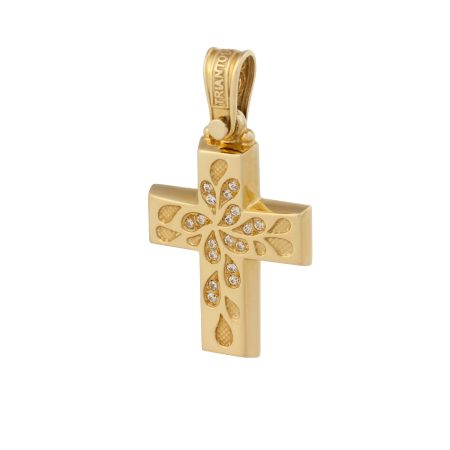 Modern cross in 18k white gold with a sparkling white diamond in its center.