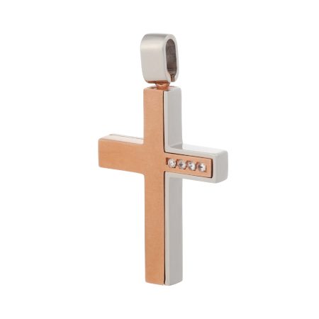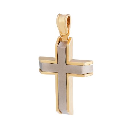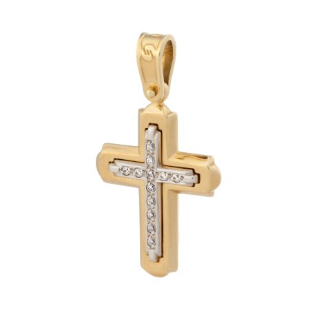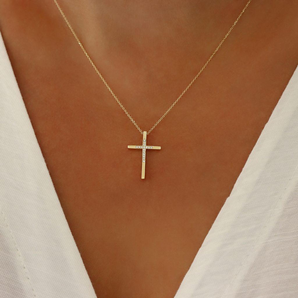 Timeless cross necklace in 18k yellow gold with white sparkling diamonds.