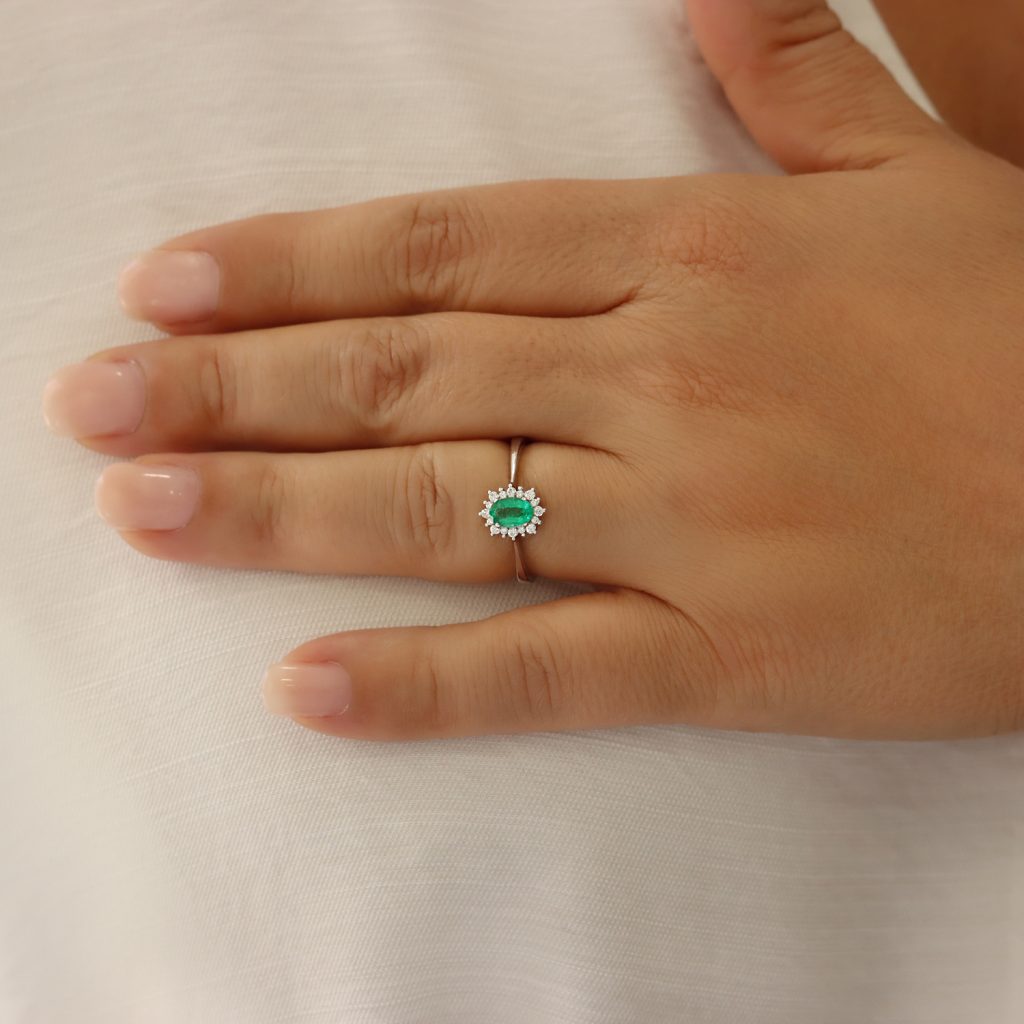 DIAMOND JOOLS Rosette Ring in White Gold 18K with Emerald & Diamonds