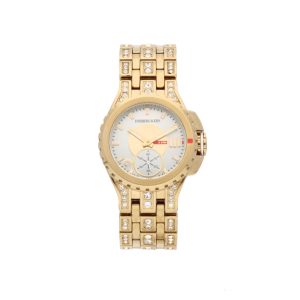 DYRBERG KERN DIAMANDIA womens watch with gold plated stainless steel case & bracelet,silver/gold dial and crystals on the bracelet.