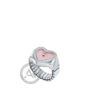 Reinvent your jewellery game with this sleek and stylish heart watch ring. Crafted from vibrant stainless steel with dazzling crystal accents, it balances timeless sophistication with modern flair. The vibrant glossy pink dial adds a radiant touch, while the flexible band to fits any finger. Slip it on for an effortless accent that elevates any look.