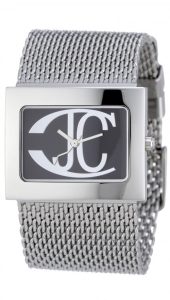 JUST CAVALLI Squared ladies watch with stainless steel case & bracelet and black dial.