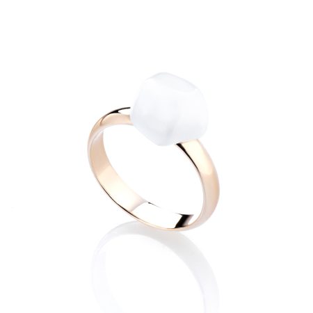 Bracelet with maxi Groumette mesh in 925 silver with rose gold galvanic and white enamelled inserts.