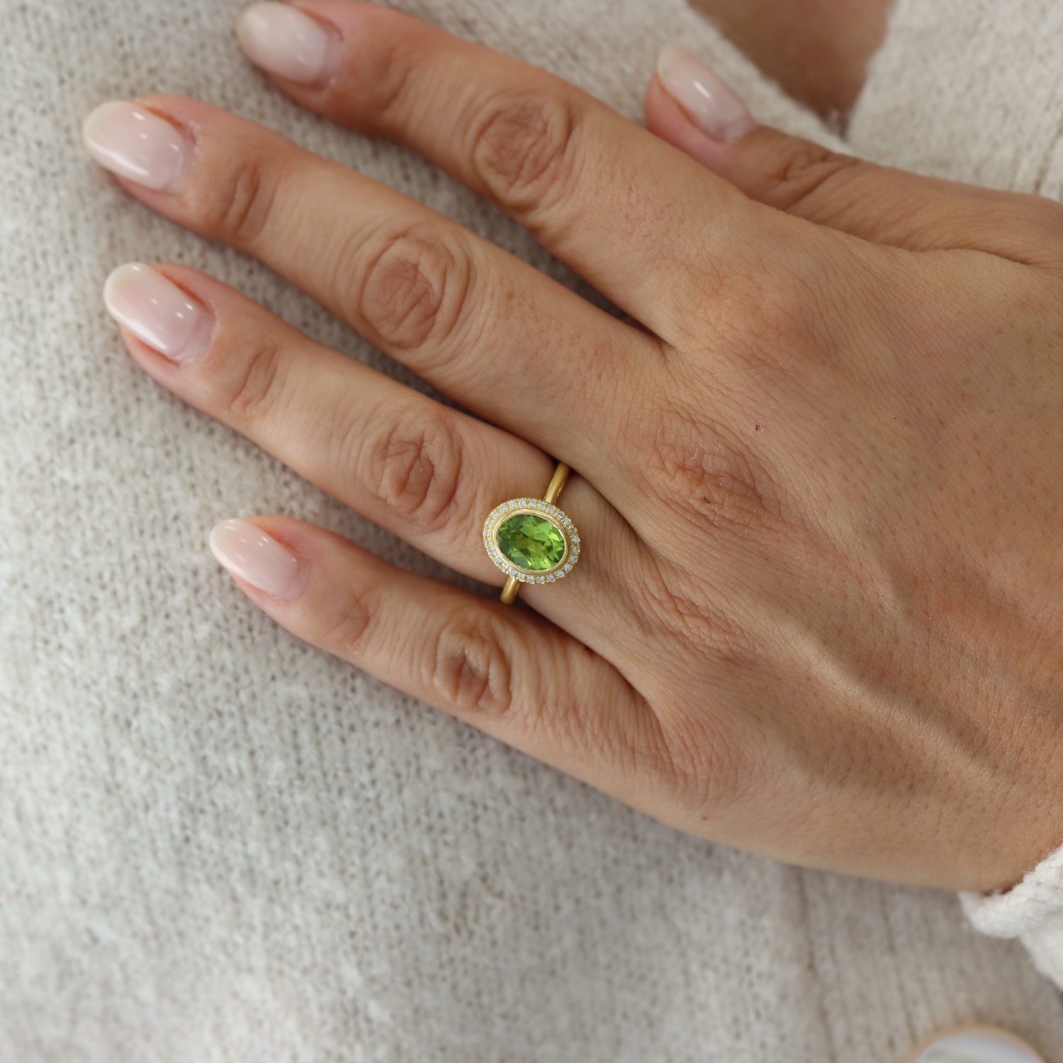 NIKOS FANOURAKIS Rosette Ring in Yellow Gold 18K with Peridot & Diamonds