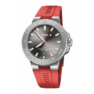 ORIS AQUIS DATE RELIEF Automatic Red Rubber Strap
