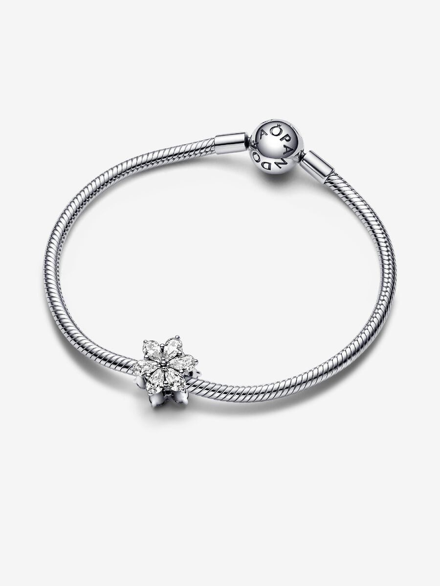 Take inspiration from the beautiful shapes of nature with the Sparkling Herbarium Cluster Charm. Inspired by pressed flowers and leaves, this hand-finished charm features a cluster of pear-shaped clear cubic zirconia stones on each side, creating an elegant, nature-inspired shape. A cluster of microbeads at the centre of the stones creates the finishing touch. Style it on your favorite bracelet or charm holder as an everlasting reminder of the beauty of nature.
