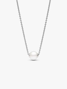 Elevate your style with our Treated Freshwater Cultured Pearl Collier Necklace from our Pandora Timeless collection. This sterling silver piece features an adjustable cable chain with a luminous treated freshwater cultured pearl pendant. A clear cubic zirconia by the clasp adds a touch of sparkle. This necklace represents the fusion of classic and contemporary, making it a perfect choice for both casual and special occasions. Please note that each treated freshwater cultured pearl is unique and can vary in size and color; normal wear and tear may occur with this material. Our freshwater cultured pearls are treated with bleaching and luster enhancement.