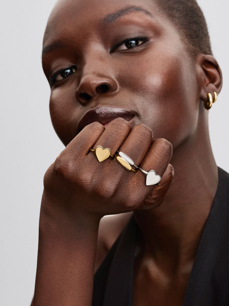 Celebrate love and connection with our sterling silver heart-shaped ring, ready to engrave with a meaningful message.