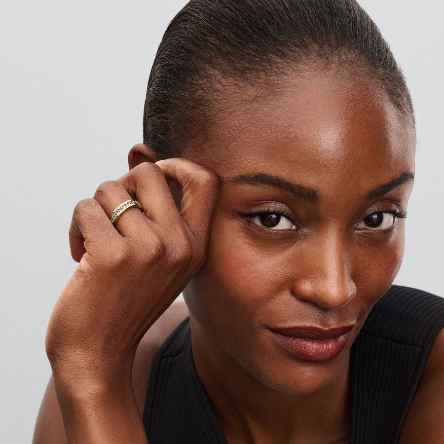 Choose a refreshed classic with the Eternity Channel Ring. Featuring a channel of sparkling stones set flush with a 14k gold-plated band, this ring can just as easily stand alone and steal the show – or join a stack and play nicely with others. Choose it as a go-anywhere addition to your look, or gift it to someone with great taste who appreciates a fresh spin on a classic.