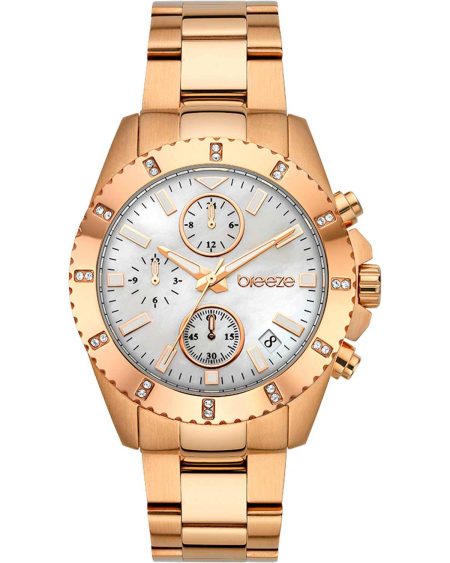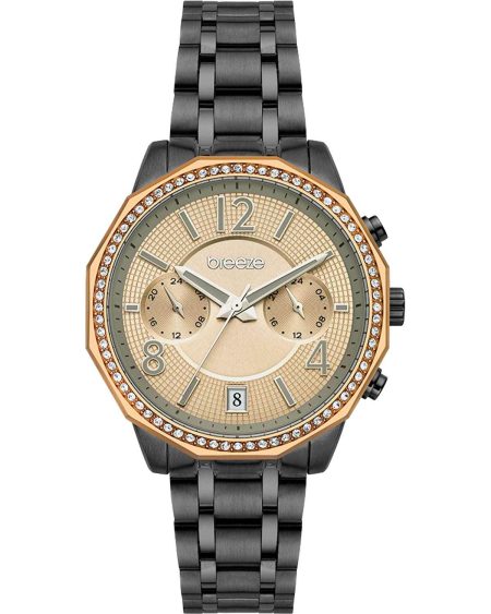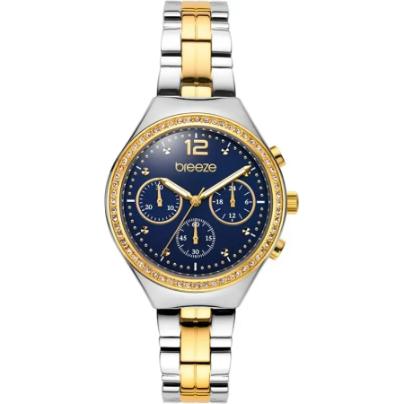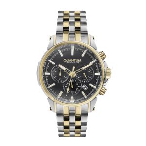 Quantum presents a classic chronograph watch with elegant details and beautiful aesthetics. It is a very good choice for your collection. The gold-plated two-tone bracelet and the case are made of stainless steel, the black dial has a date window and chronographs.
