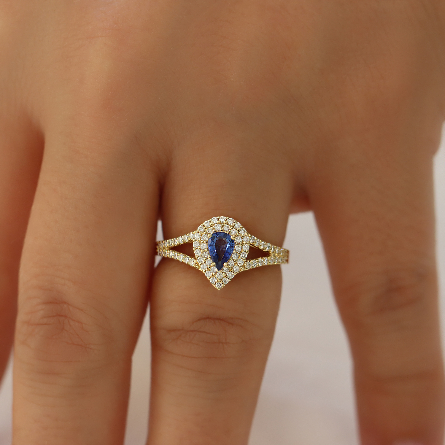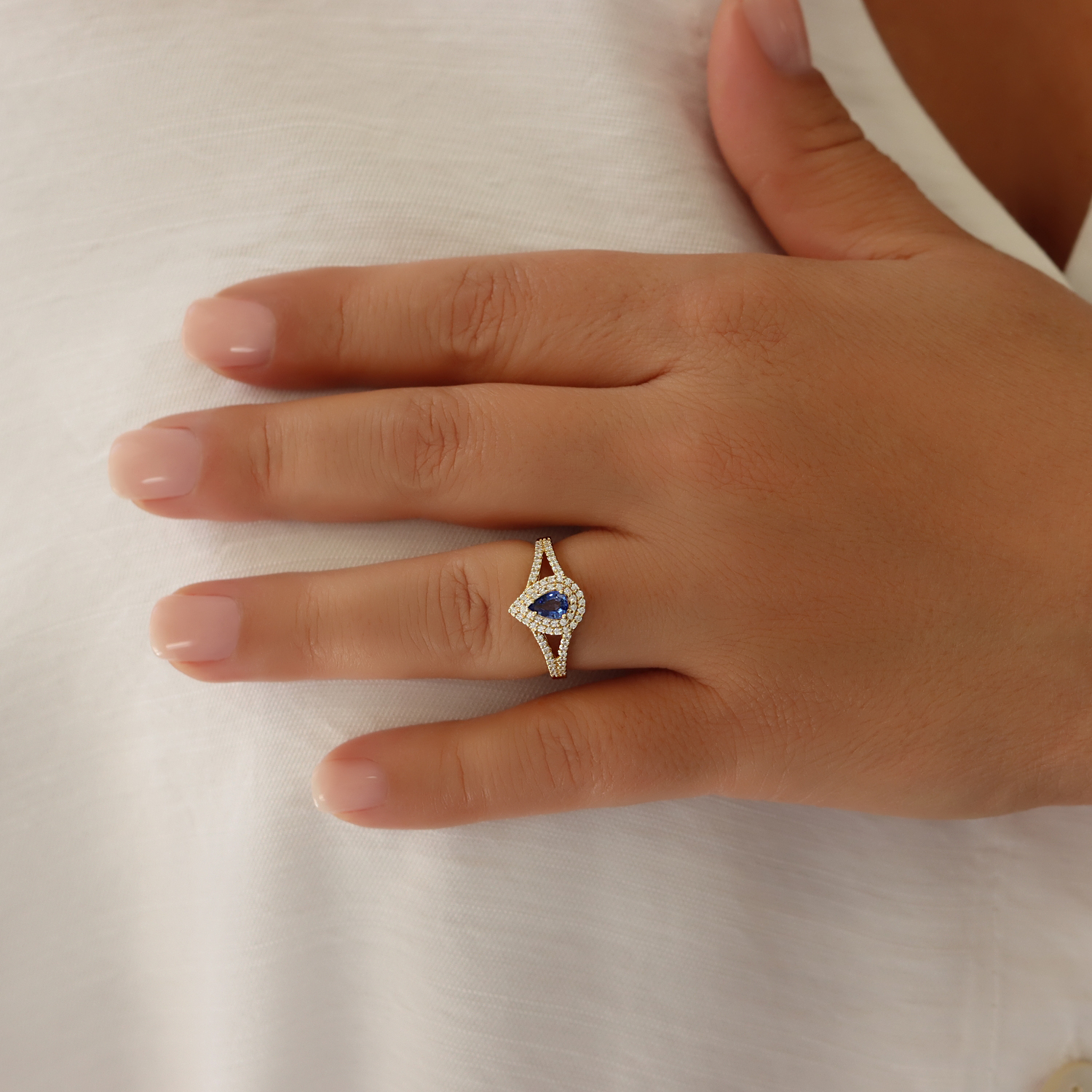 Ring in Yellow Gold 18K with Sapphire & Diamonds