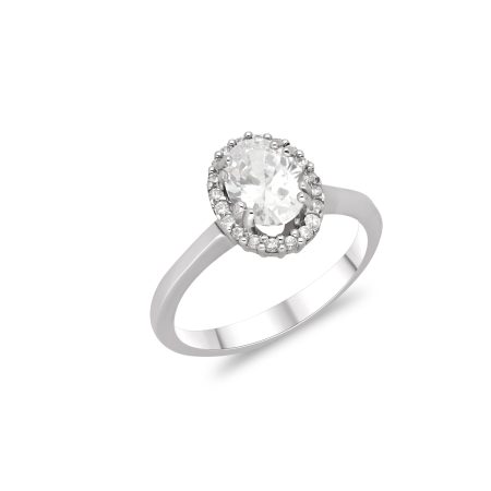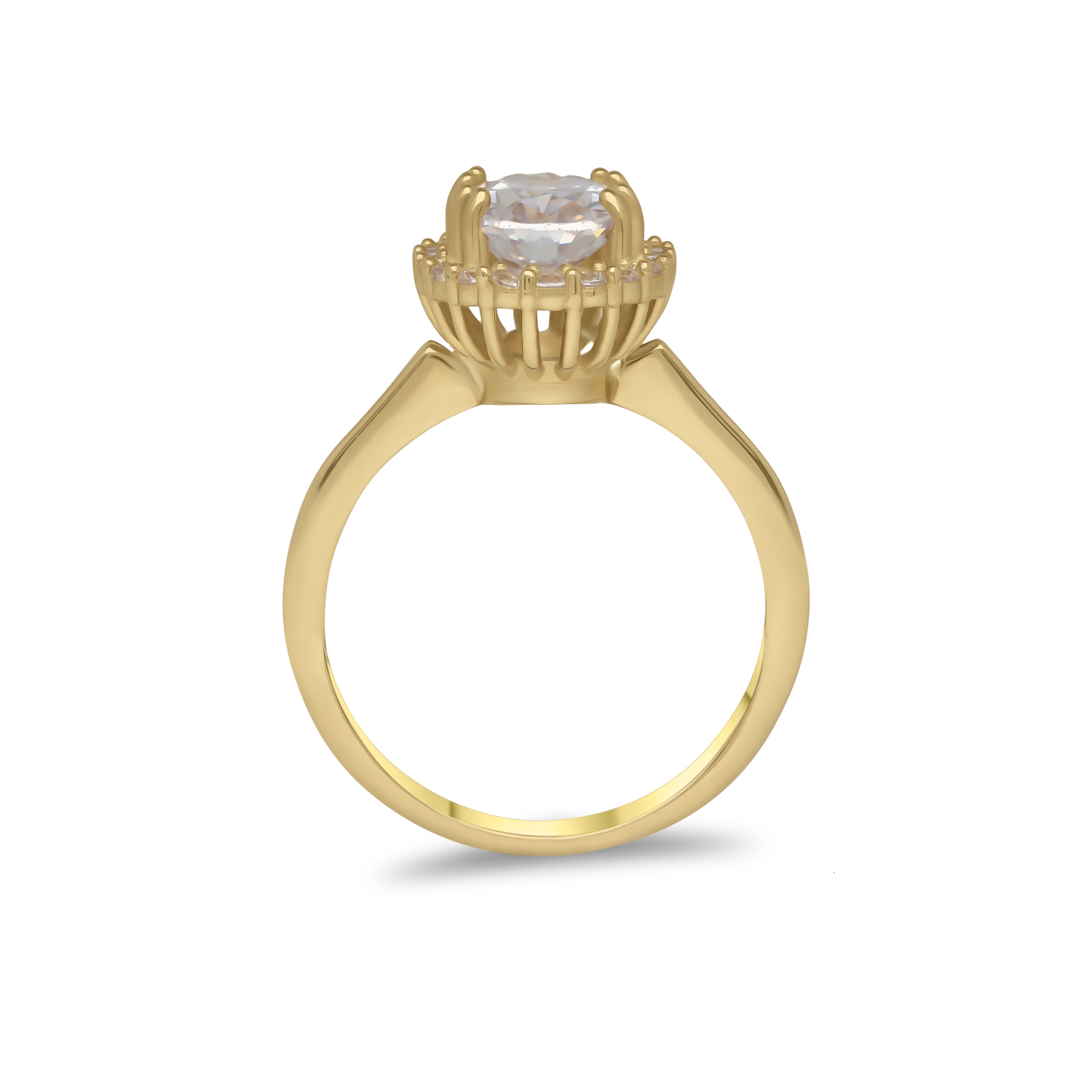 Impressive oval rosette ring in 14k yellow gold with zircons.