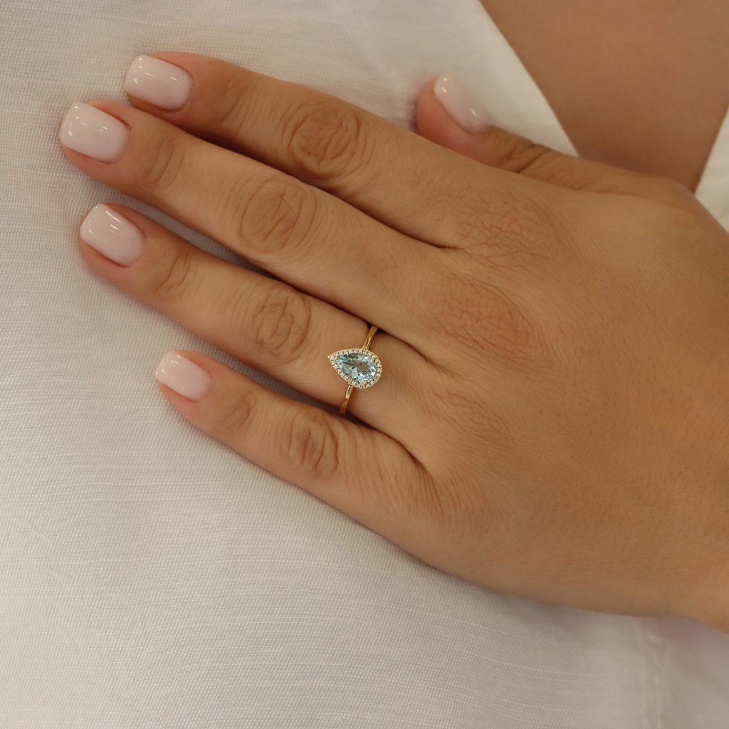 Rosette Ring in Yellow Gold 18K with Aquamarine & Diamonds