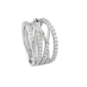 SALVINI NASTRO 18k white gold multi strand ring with brilliant cut diamonds. White gold and diamond jewels, distinguished by their beautiful settings and dazzling radiance.