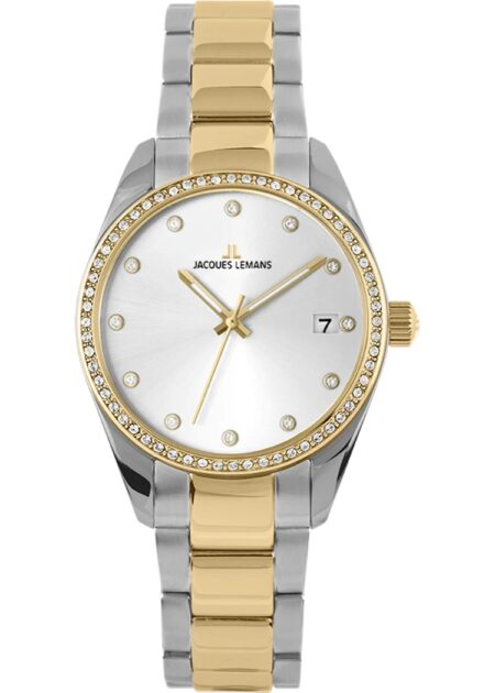 A men's automatic watch from Seiko's 5 Sports series, with a stainless steel case and a steel bracelet. It features a curved Hardlex crystal, a screw-down case back, and a unidirectional rotating bezel. The movement (4R36) is visible on the case back and has a 41-hour power reserve. It also features a day and date display with a double window at position 3.