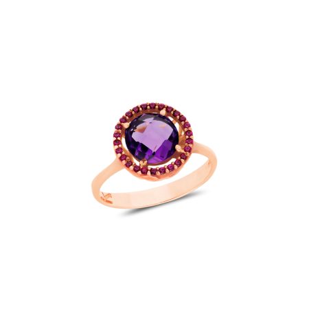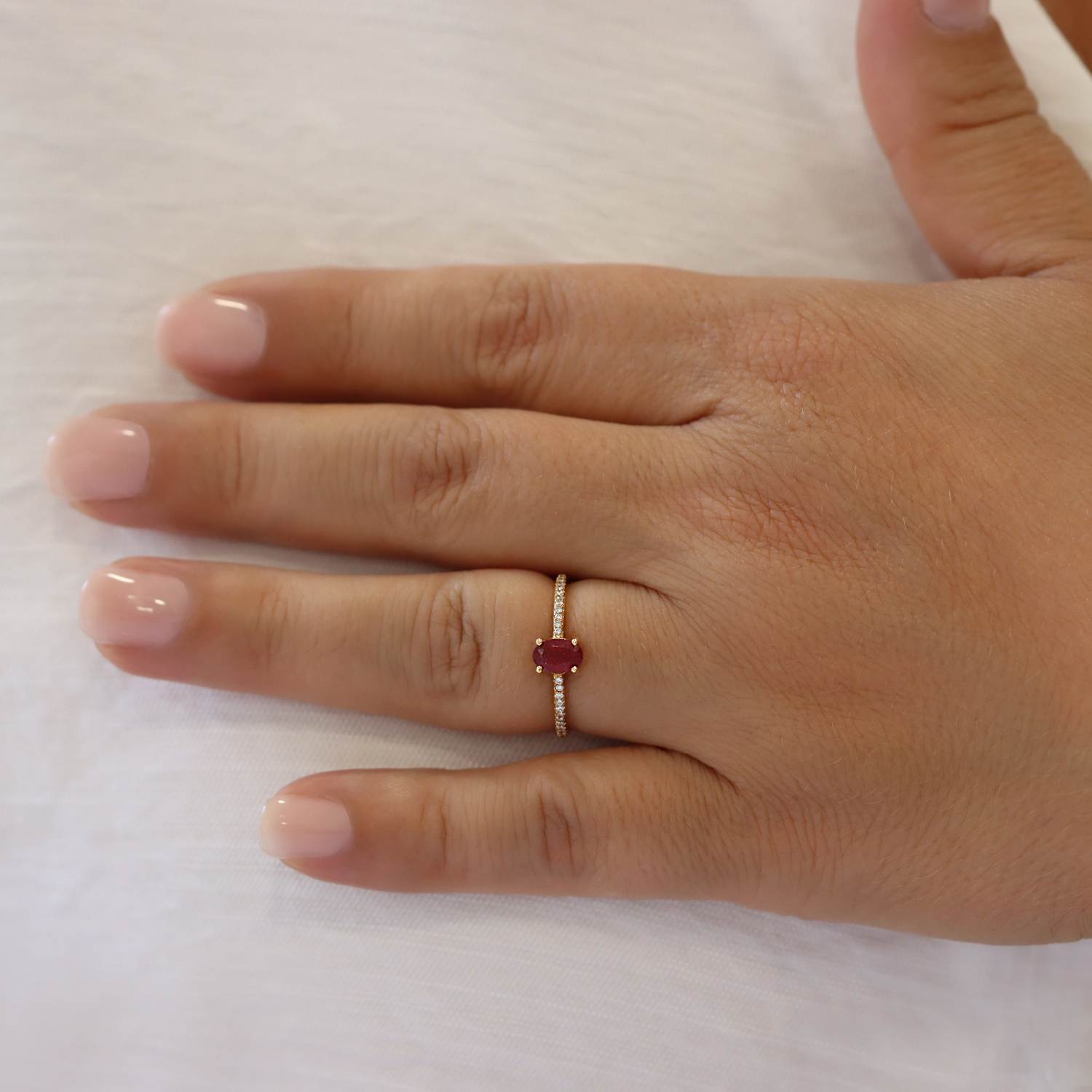 Solitaire Ring in Rose Gold 18K with Ruby & Diamonds