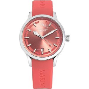 TypeWatchBrandSTRUMENTO MARINOGenderFemaleOccasionCasual, SportMovementQuartz-BatteryCrystal TypeMineral crystal with anti-corrosion coatingCase ShapeRoundCase ColorSilverBand TypeSilicone / Rubber StrapBand ColourPinkBucklePin BuckleFunctionsDate, HandsQuarantee2 Years of Official Dealership