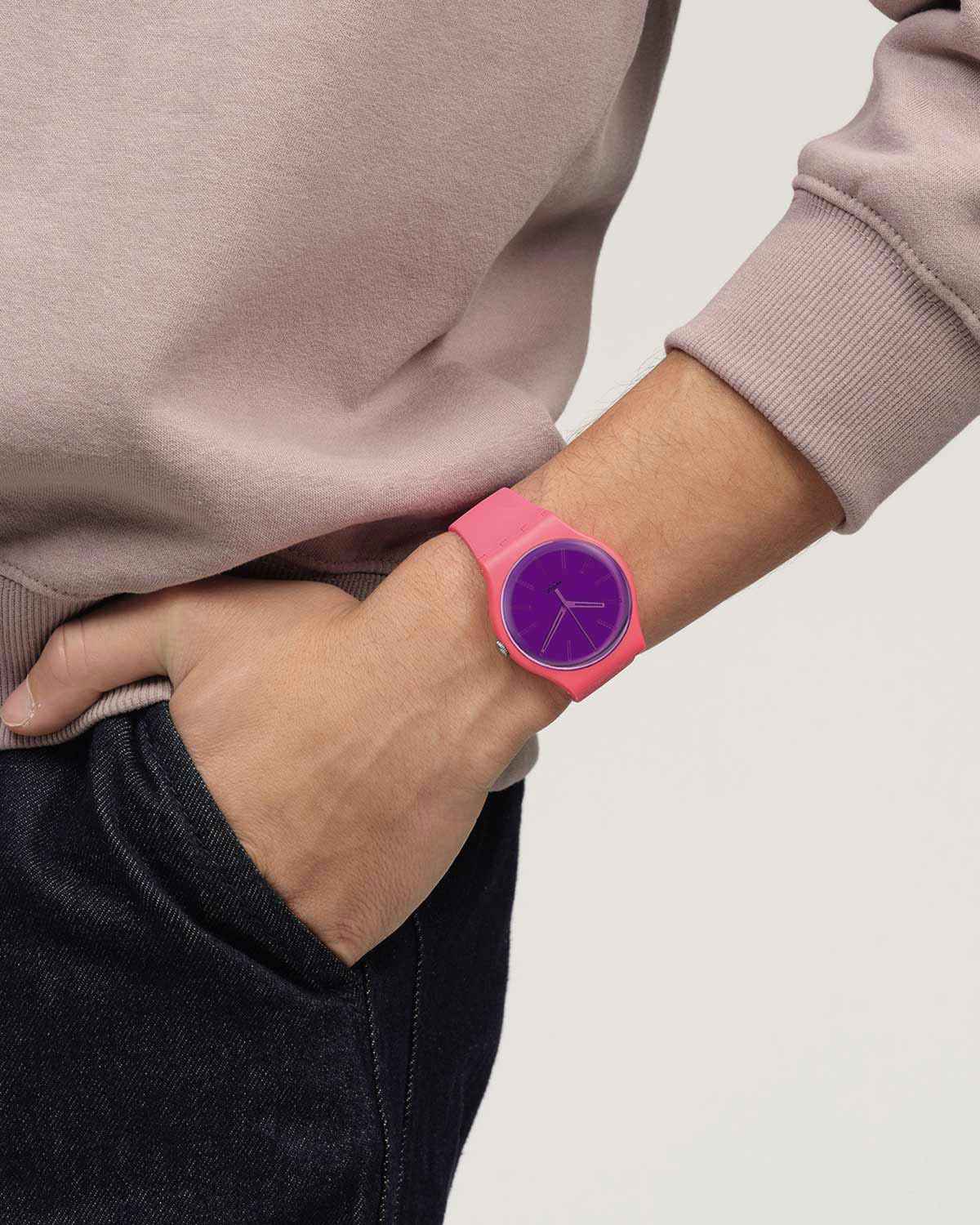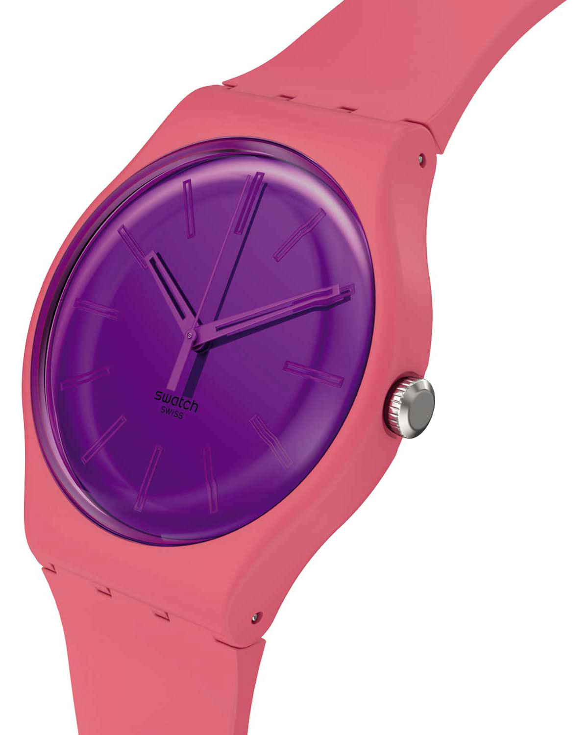 TypeWatchBrandSWATCHModelBERRY HARMONIOUSGenderMale, FemaleMaterialPlasticMovementQuartz-BatteryCrystal TypeZelatinaCase ShapeRoundCase ColorPinkDial ColorPurpleBand TypeSilicone / Rubber StrapBand ColourPinkBucklePin BuckleFunctionsHandsCountry of OriginSwitzerlandQuarantee2 Years of Official Dealership