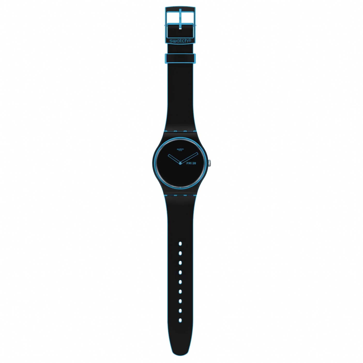 SWATCH MINIMAL LINE BLUE Black Silicone Strap