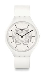 TypeWatchBrandSWATCHGenderFemaleMaterialPlasticMovementQuartz-BatteryCrystal TypeZelatinaCase ShapeRoundCase ColorWhiteDial ColorWhiteBand TypeSilicone / Rubber StrapBand ColourWhiteBucklePin BuckleFunctionsHandsCountry of OriginSwitzerlandQuarantee2 Years of Official Dealership