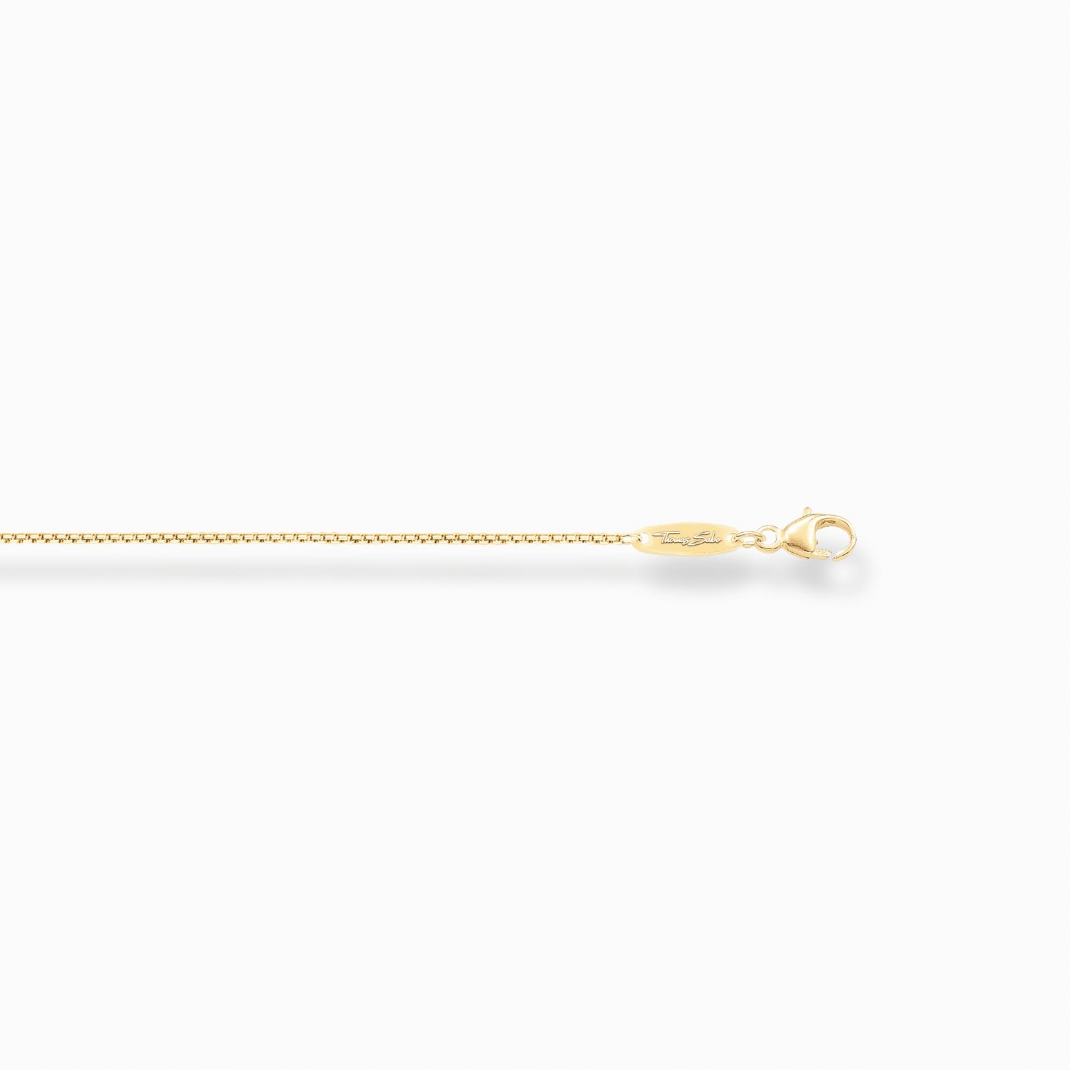 Venezia yellow gold plated necklace. An essential jewellery piece, unmissable from your jewellery box. The Venezia yellow gold plated chain necklace is sure to become your day-to-night staple thanks to its versatility and understated elegance. The 925 Sterling silver chain necklace features a radiant 18 carat yellow gold plating and a practical lobster clasp. The yellow gold plated chain is three-stage adjustable in length 38-42 cm, and two-stage adjustable in length 45-50 cm. The width of the chain is 0.1 cm. The chain looks stunning when paired with one or more of your favourite pendants, ultra-chic if worn on its own for a minimalistic look, on-trend if layered with other chain necklaces.